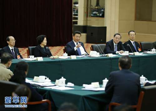 2015年3月4日,习近平看望出席全国政协十二届三次会议的民革、台盟、台联委员,听取委员们的意见和建议,并发表重要讲话。 新华社记者 鞠鹏 摄