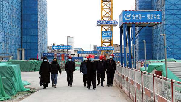 检查中项目管理人员介绍,项目部严格落实相关政府部门工作部署要求,第一时间成立疫情防控应急领导小组,对未离京项目人员进行防疫宣传,包车接回返岗人员进行登记备案,及时隔离观察;项目实行封闭式、分区域管理,设立隔离间并储备充足的疫情防控物资;项目人员一天测量两次体温并做好台账记录;食堂采取分时段进餐制,同时用隔板将餐桌隔断,尽量减少人员接触;项目大门区域由值班人员定时消毒,各门岗做好进入登记检查消毒等防疫措施。“项目自正式复工以来,按照有关防疫规定和安全管理要求做了许多工作。制定了详细的复工方案和防控应急预案,压实安全管理工作,及时发现和处置安全隐患,确保施工安全。”项目经理徐刚说。
